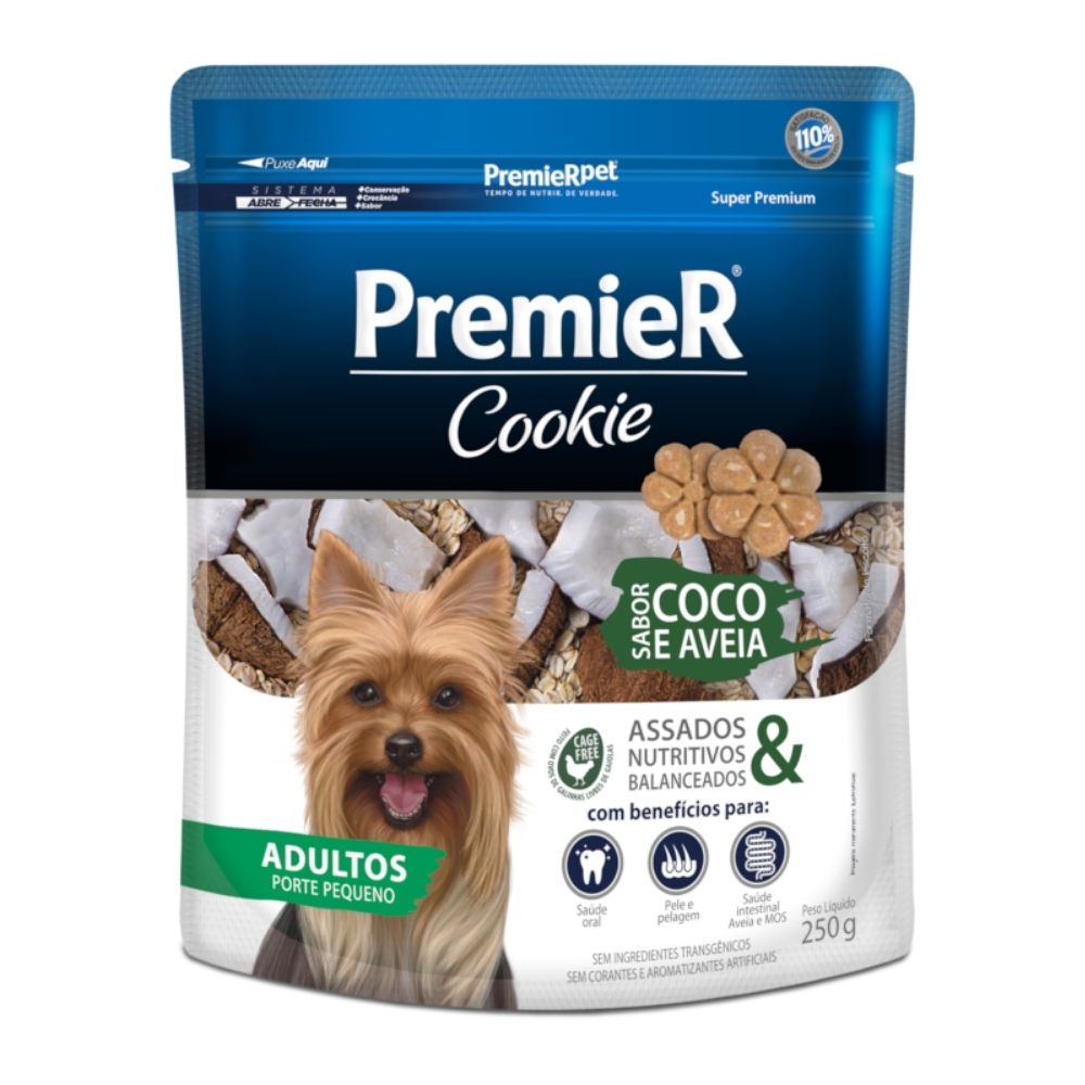 Com tamanho adequado para cães de porte pequeno, o Cookie PremieR Coco e Aveia é a escolha ideal para momentos de carinho e recompensa.